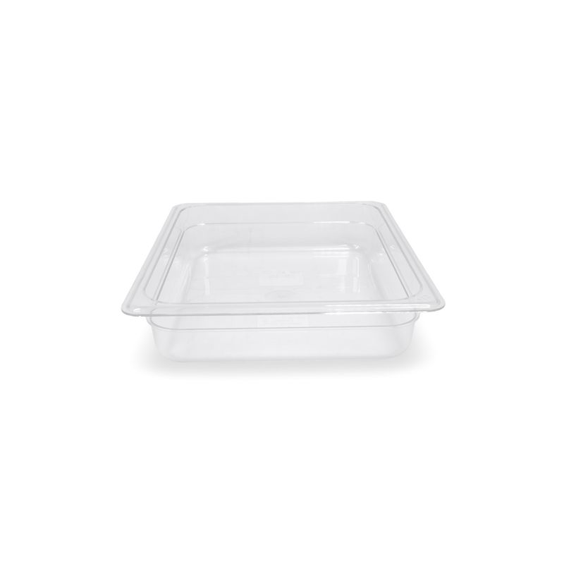 Fabricado en policarbonato transparente, ofrece resistencia superior y excelente visibilidad del contenido, ayudando a mantener estándares profesionales de higiene y presentación.