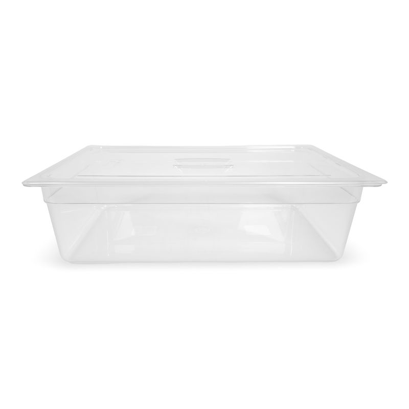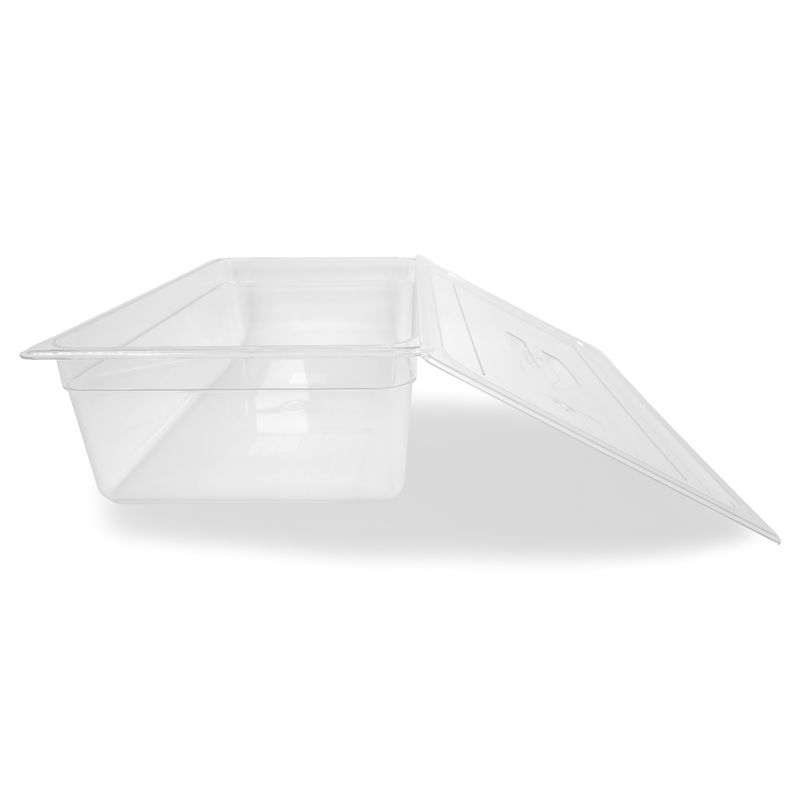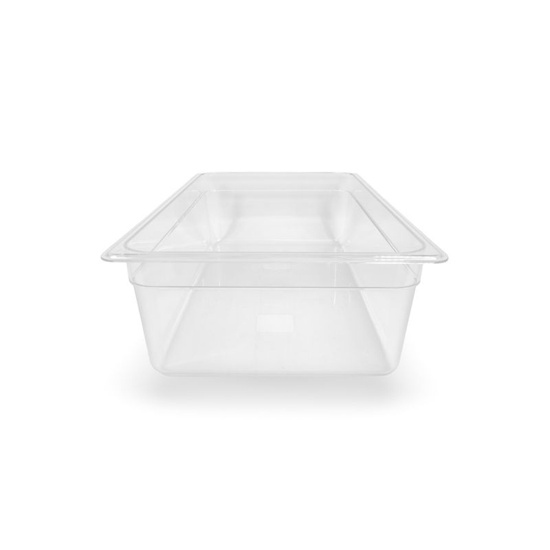 La transparencia del material facilita el control visual del producto almacenado, mientras su profundidad permite optimizar espacio y reducir cambios constantes de recipientes, mejorando la eficiencia operativa.