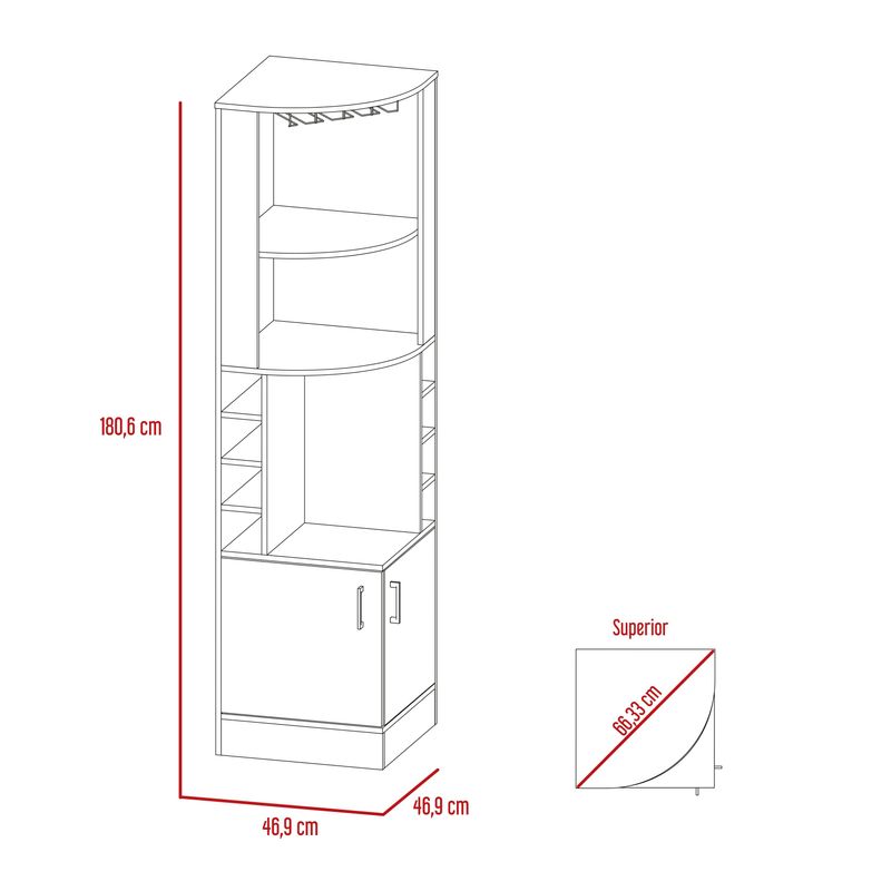 Bar Esquinero, con 4 de entrepaños y, 2 puertas batientes, porta copas y amplio espacio para almacenar botellas.