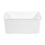 El tono blanco aporta claridad, frescura y una estética neutra que combina perfectamente con cualquier estilo decorativo. Además, su estructura firme y bordes ergonómicos facilitan su manipulación y transporte. Características destacadas Capacidad de 10 litros, ideal para almacenar objetos medianos o múltiples artículos. Diseño moderno con perforaciones circulares que permiten mejor ventilación.
