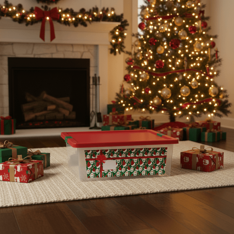 Fabricada en plástico resistente, con broches de seguridad que garantizan un cierre firme y práctico, permite almacenar dulces, productos o decoraciones con estilo. ¡Un detalle útil, moderno y navideño para regalar o decorar!
