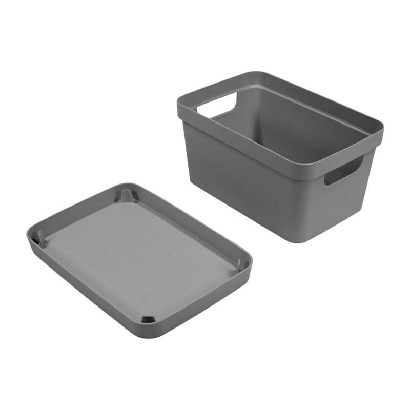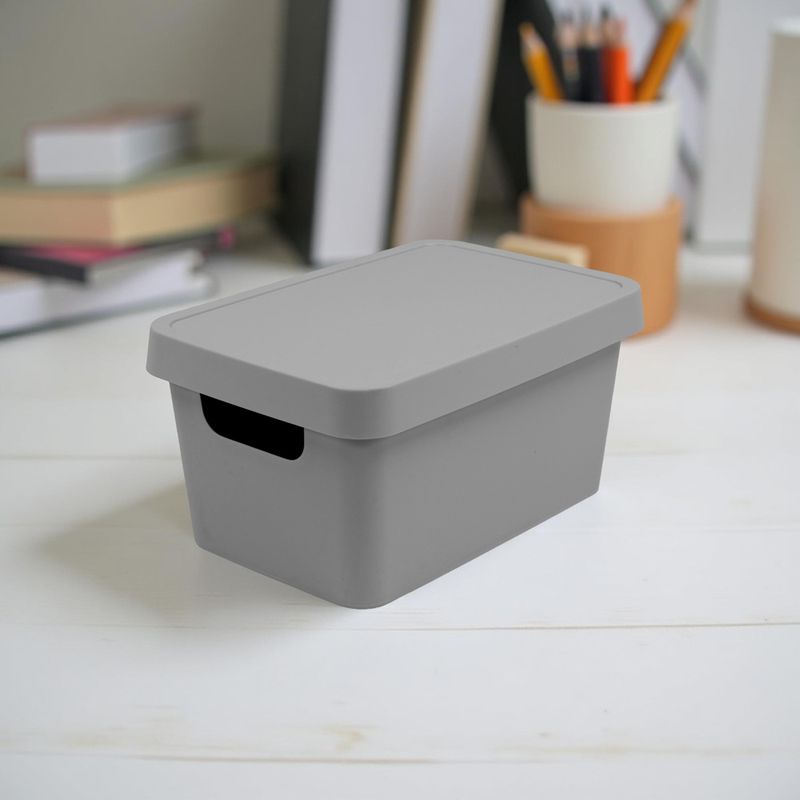 La Caja Organizadora Vinto con Tapa es una solución práctica y elegante para mantener tus espacios limpios, ordenados y visualmente armoniosos. Con una capacidad de 3,6 litros y un color gris moderno, esta caja se adapta fácilmente a diferentes ambientes del hogar, desde la cocina hasta el baño o la oficina.