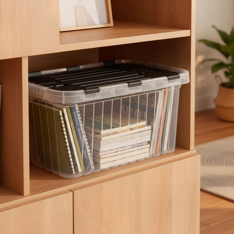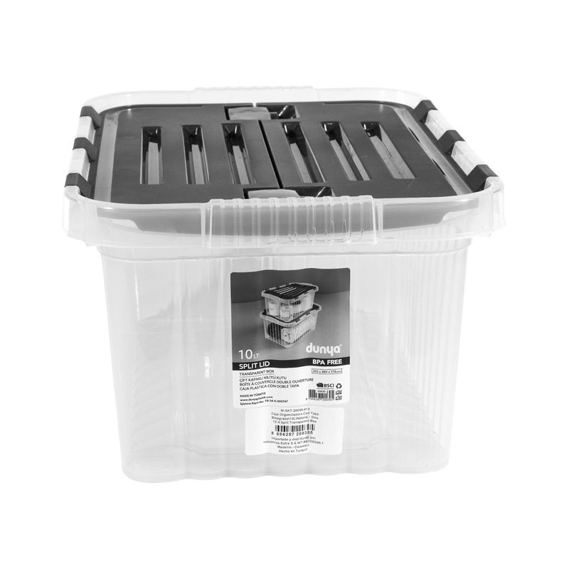 Su tapa bisagrada permite abrir y cerrar con facilidad, manteniendo tus objetos protegidos del polvo y garantizando un acceso rápido cuando lo necesites. Ideal para guardar documentos, juguetes, utensilios o artículos del hogar, optimizando el espacio y evitando el desorden. Además, su formato apilable te permite aprovechar mejor cada rincón, ya sea en estanterías, closets o zonas de almacenamiento.