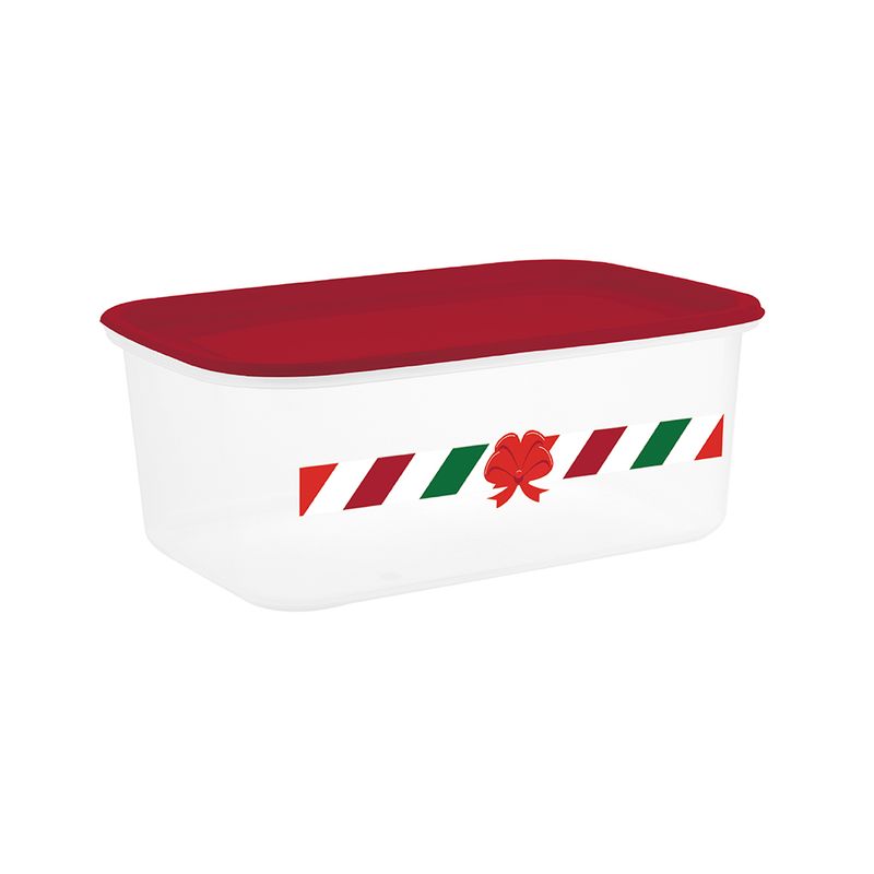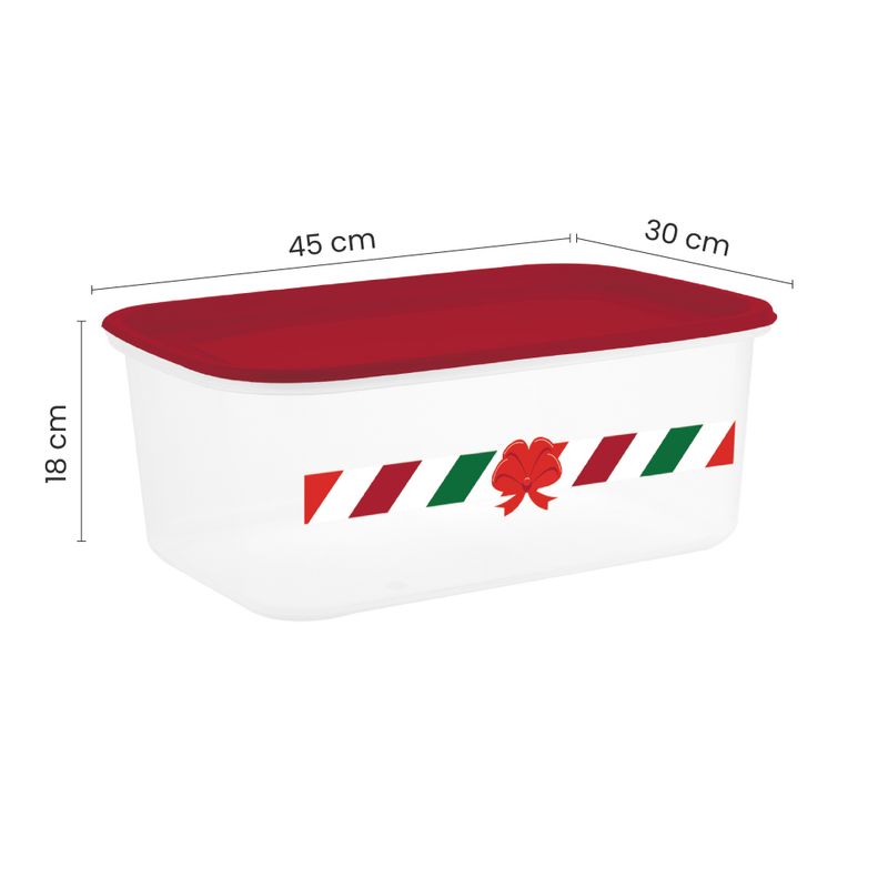 La Magia de Dar es ideal para almacenar o presentar regalos medianos en esta temporada. Con su diseño transparente con toques rojos, broches seguros y tamaño práctico, es perfecta para crear anchetas, empaques de regalos o mantener el orden con estilo.