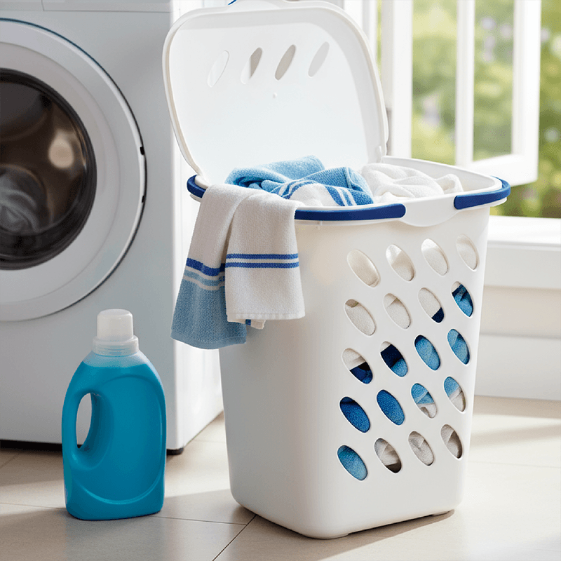 Con una capacidad de 46 litros, ofrece el espacio ideal para almacenar ropa, toallas o prendas de cama, manteniendo el orden con facilidad. Su tapa ajustada permite mantener la discreción y proteger el contenido, aportando una apariencia limpia y organizada.