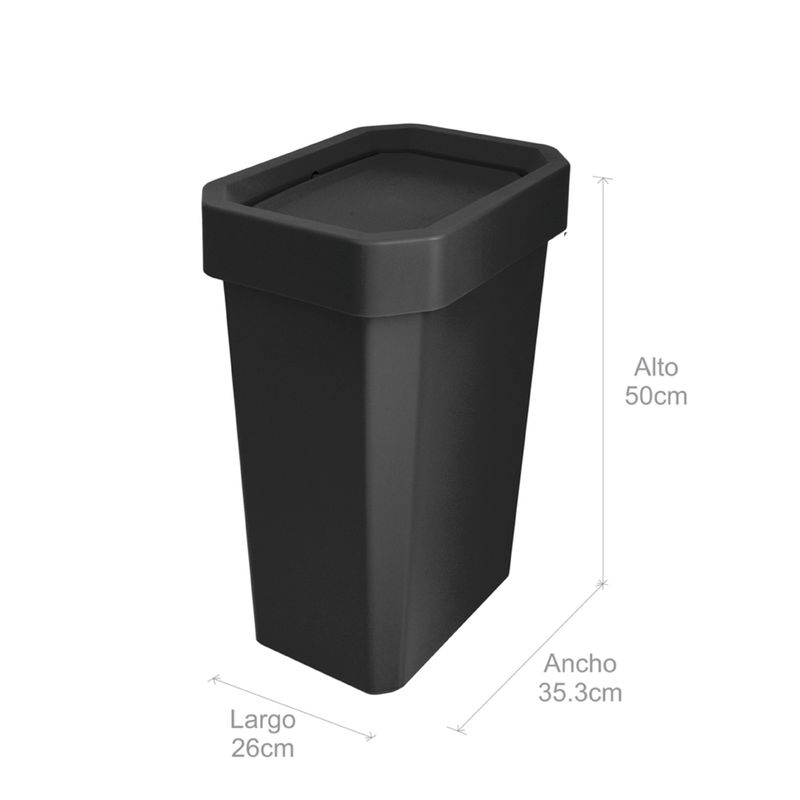 La Caneca – Papelera EstraBins Vaivén de 26 litros en acabado negro mate es una solución funcional y resistente para el manejo y disposición de residuos en hogares, instituciones e industrias. Su diseño sobrio y moderno la hace ideal para espacios que requieren orden, durabilidad y una buena presentación.