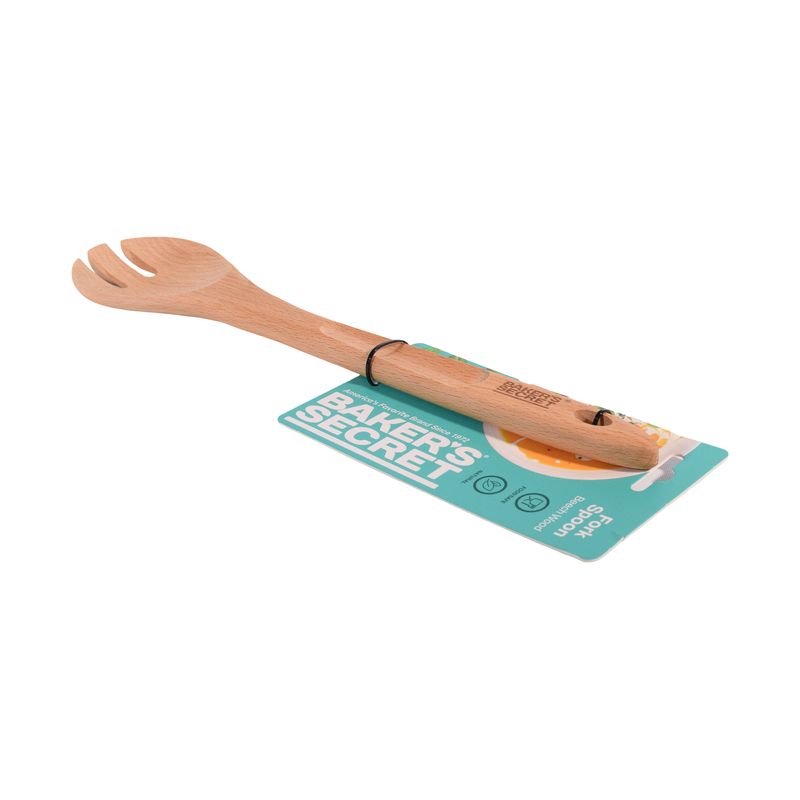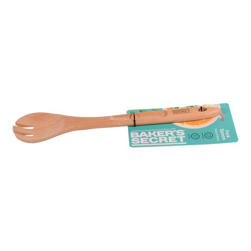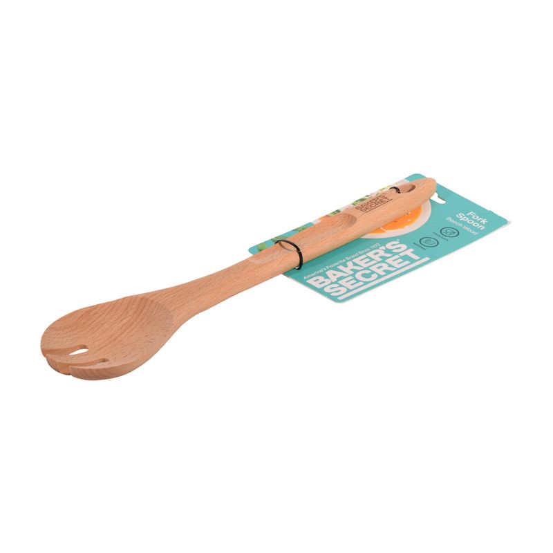 Características principales Medida: 33 cm, tamaño perfecto para manipular alimentos en recipientes profundos o amplios. Material: madera natural, resistente y delicada con superficies antiadherentes. Diseño doble función: combina la utilidad de una cuchara con la practicidad de un tenedor. Estilo clásico: acabado natural que aporta un toque rústico y elegante a la cocina.