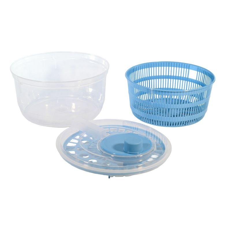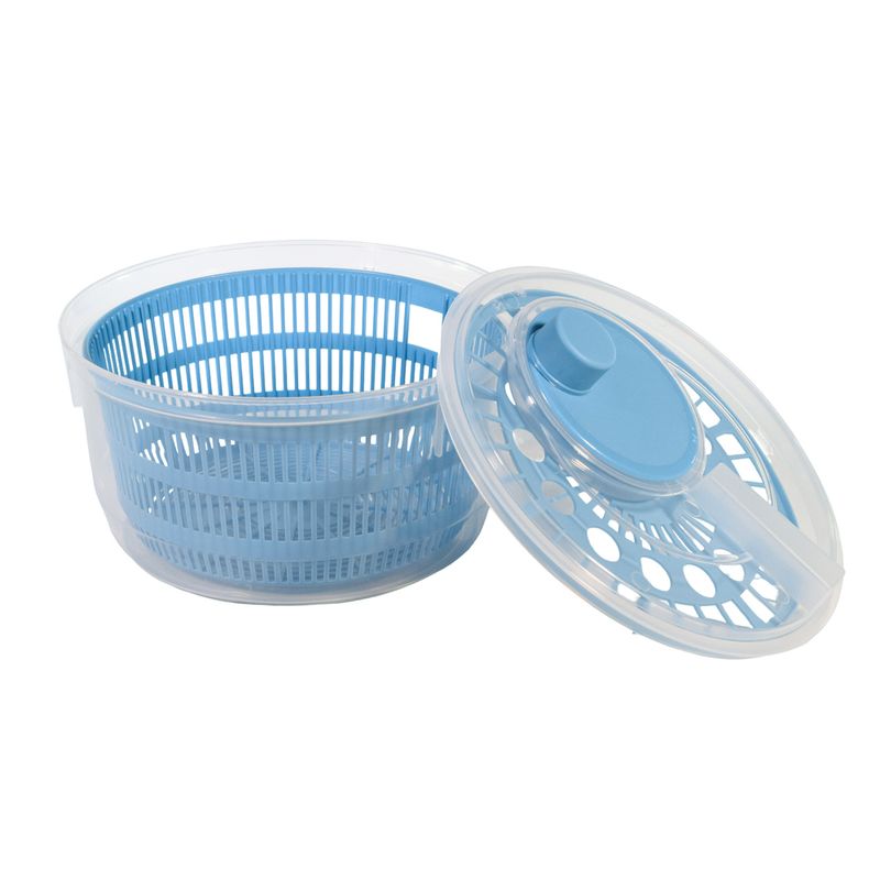 Su estructura incluye: Contenedor transparente: Permite ver fácilmente el estado de los alimentos durante el uso y brinda una apariencia limpia y ordenada. Cesta interna perforada: De amplio diámetro, diseñada para facilitar el drenaje uniforme del agua. Su perforación regular ayuda a que el proceso de escurrido sea rápido y efectivo. Lava y escurre tus verduras con su sistema de rotación centrífuga en solo unos segundos mediante su manivela en la tapa.