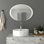 * Espejo sencillo ovalado con diseño en sandblasting* Ensamble a la pared con soporte en aglomerado (Chaflán) incluye tornillos y chazos