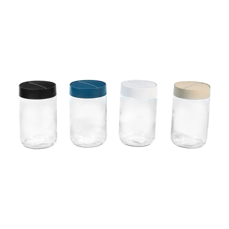 Material resistente y duradero El cuerpo del frasco está fabricado en vidrio grueso y de alta calidad, lo que garantiza una larga vida útil y una conservación segura de los alimentos. Este material no absorbe olores ni sabores, lo que ayuda a mantener la frescura natural de cada producto almacenado. Tapa de color surtido con cierre hermético
