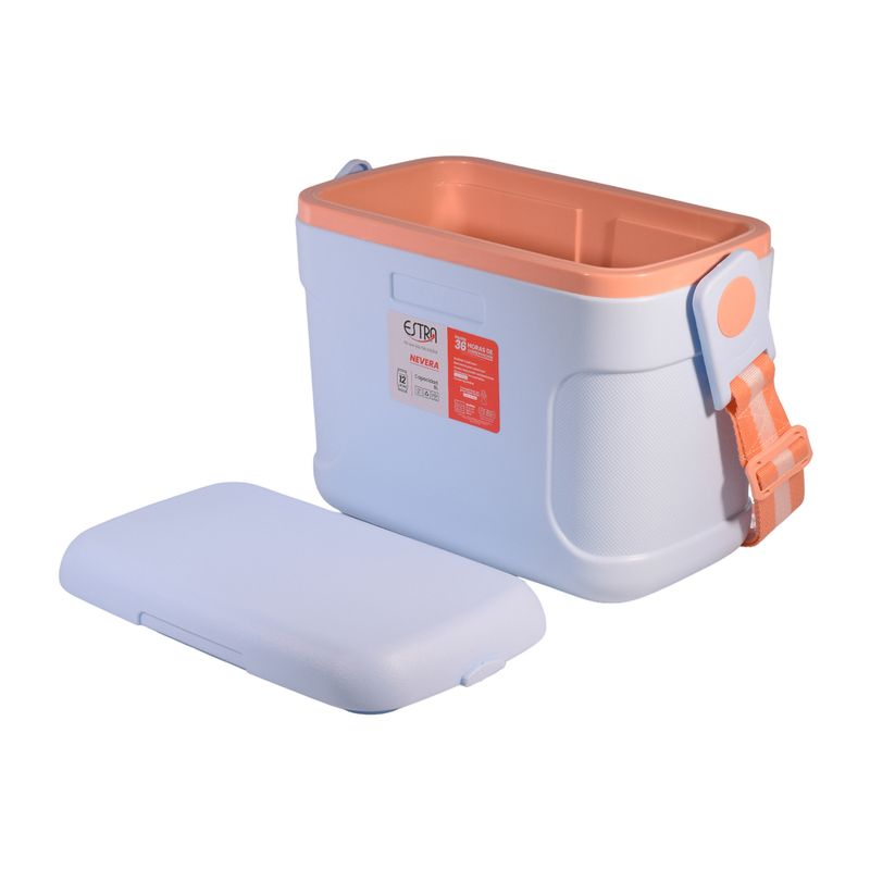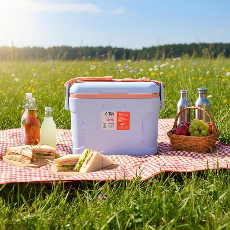 Material resistente y duradero Está fabricada con plástico rígido de alta resistencia, diseñado para proteger el contenido interior y soportar el uso continuo. Además, su superficie es fácil de limpiar, lo que garantiza una mejor higiene y mantenimiento. Tapa superior con cierre seguro La tapa abatible superior encaja perfectamente con el cuerpo de la nevera, ofreciendo un cierre firme y seguro.