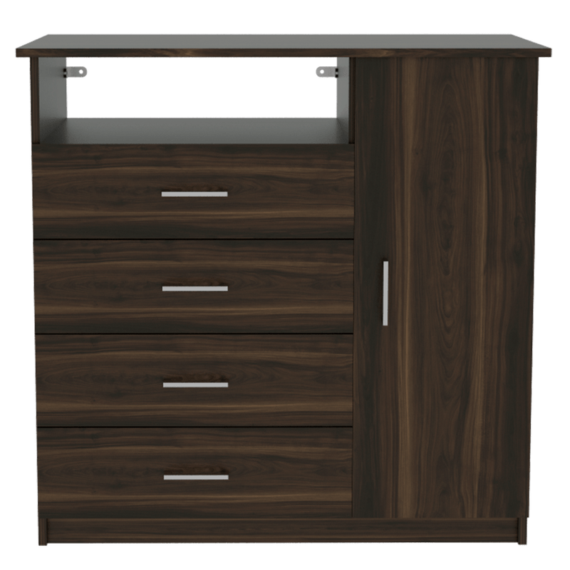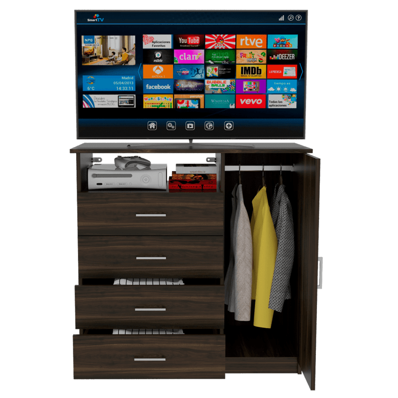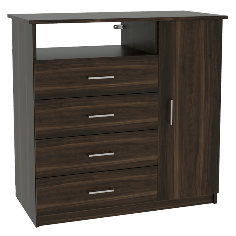 Elaborado en Madera aglomerada MDP, recubierta con láminas melamínicas de excelente calidad, en color Caoba.