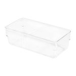 Características principales -Material plástico rígido y transparente: resistente, ligero y fácil de limpiar. -Paredes rectas y lisas: facilitan el apilado con otros organizadores similares y maximizan el espacio útil. -Diseño sin tapa: pensado para un acceso rápido al contenido y una mejor circulación del aire frío. -Esquinas redondeadas: contribuyen a una limpieza sencilla y evitan que se acumulen residuos.