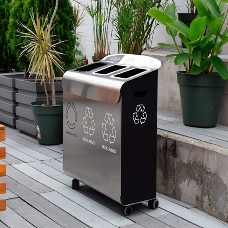 El Punto Ecológico Icona S de 3 compartimentos de la marca Ecosmart cumple con todos estos requisitos, convirtiéndose en una excelente opción para quienes buscan promover una cultura de separación de residuos sin perder de vista la calidad y el diseño. Tres compartimentos, un solo objetivo: reciclar bien Este modelo cuenta con tres compartimentos con contenedores plásticos internos, ideal para facilitar la clasificación de residuos como ordinarios, reciclables y orgánicos. Gracias a su diseño claro y funcional, permite que cualquier persona pueda identificar rápidamente dónde va cada tipo de desecho, reduciendo errores y mejorando la eficiencia del reciclaje.