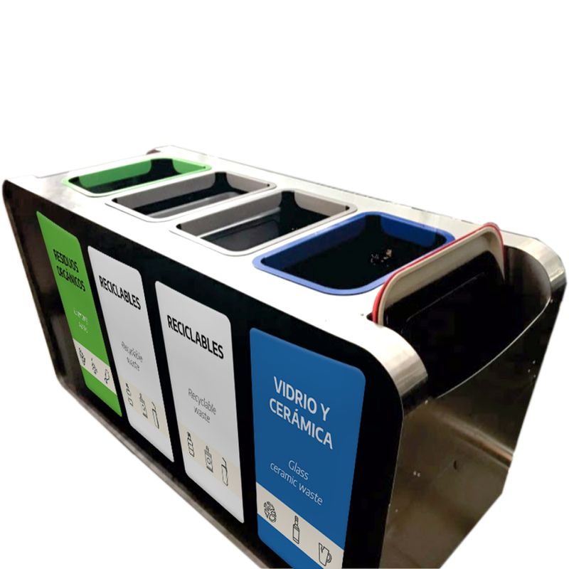 Diseñado para espacios amplios y con alto flujo de personas, este modelo ofrece gran capacidad, durabilidad y facilidad de uso. Ya sea para oficinas, centros educativos, hospitales o zonas comunes en edificios y comercios, este punto ecológico permite implementar un sistema de reciclaje claro y eficiente que contribuye a la cultura ambiental de tu organización.