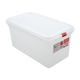 El color blanco de este recipiente es sinónimo de limpieza, orden y profesionalismo. Además, su superficie lisa y brillante facilita la detección de residuos o impurezas, ayudando a mantener los más altos estándares de higiene. Fabricado con materiales resistentes y de alta calidad, el recipiente conserva su color y estructura incluso tras un uso intensivo o múltiples lavados, soportando perfectamente las exigencias del entorno gastronómico.