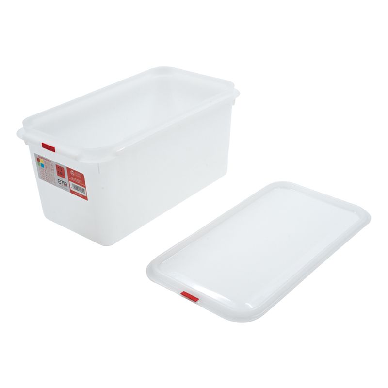 Con una capacidad de 6,5 litros, este recipiente Gastronorm ofrece el espacio perfecto para conservar alimentos en mayor volumen, ya sean ingredientes frescos, preparaciones o guarniciones listas para servir. Su forma rectangular permite aprovechar al máximo el espacio disponible en refrigeradores, mesas frías o estaciones de trabajo, garantizando una organización eficiente y un apilado seguro.