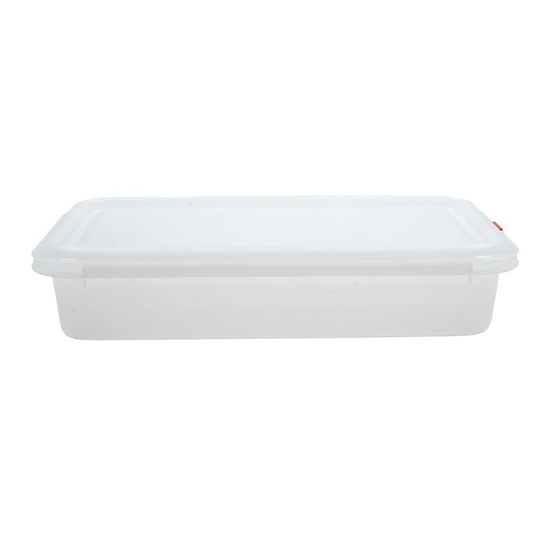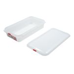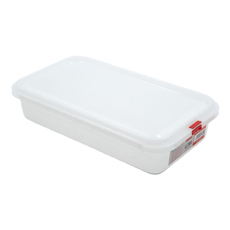 Con una capacidad de 2,8 litros, el Recipiente Gastronorm 1/3 ofrece el tamaño ideal para almacenar porciones medianas de alimentos, ingredientes frescos o preparaciones listas para servir. Su forma rectangular permite aprovechar al máximo el espacio disponible en refrigeradores, mesas frías o vitrinas, facilitando el apilado y la manipulación durante las jornadas de trabajo.