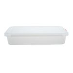 El color blanco de este recipiente aporta una apariencia limpia y profesional, reflejando los más altos estándares de higiene. Además, su superficie lisa permite una fácil limpieza y la detección inmediata de residuos o contaminación, garantizando la seguridad en la manipulación de los alimentos. Fabricado con materiales de alta resistencia, este recipiente soporta el uso constante, los cambios de temperatura y el lavado frecuente sin perder su forma ni color.