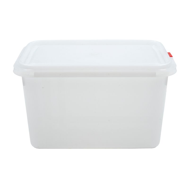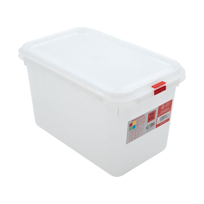 Con una capacidad de 4,5 litros, este recipiente Gastronorm ofrece el equilibrio perfecto entre tamaño y funcionalidad. Su forma rectangular permite un aprovechamiento máximo del espacio en refrigeradores, mesas frías o estanterías, facilitando el apilado y la organización por tipo de alimento. Es ideal para almacenar porciones medianas de ingredientes, guarniciones o preparaciones listas para el servicio.