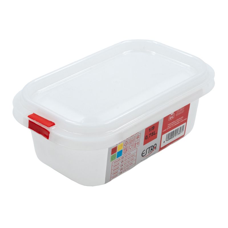 Este recipiente está diseñado para ofrecer máxima funcionalidad y control en la conservación de alimentos. Con una capacidad de 0,75 litros y un diseño inteligente, este recipiente se convierte en un aliado esencial tanto en cocinas profesionales como en el hogar.