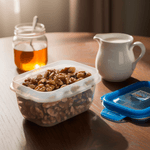 Capacidad de 240ML • Color azul • Diseño rectangular compacto • Ideal para porciones pequeñas • Sistema de cierre seguro • Fácil almacenamiento