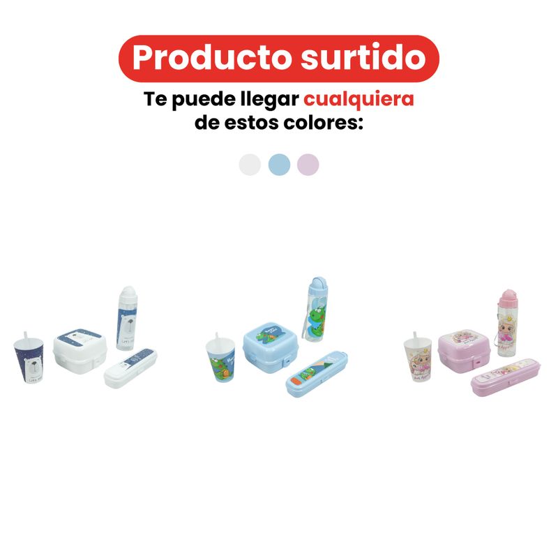Este set es una excelente opción para acompañar a los niños en diferentes momentos del día. Ya sea en casa, en el colegio o en paseos al aire libre, cada pieza ofrece comodidad y seguridad, permitiendo transportar alimentos y bebidas de manera organizada.